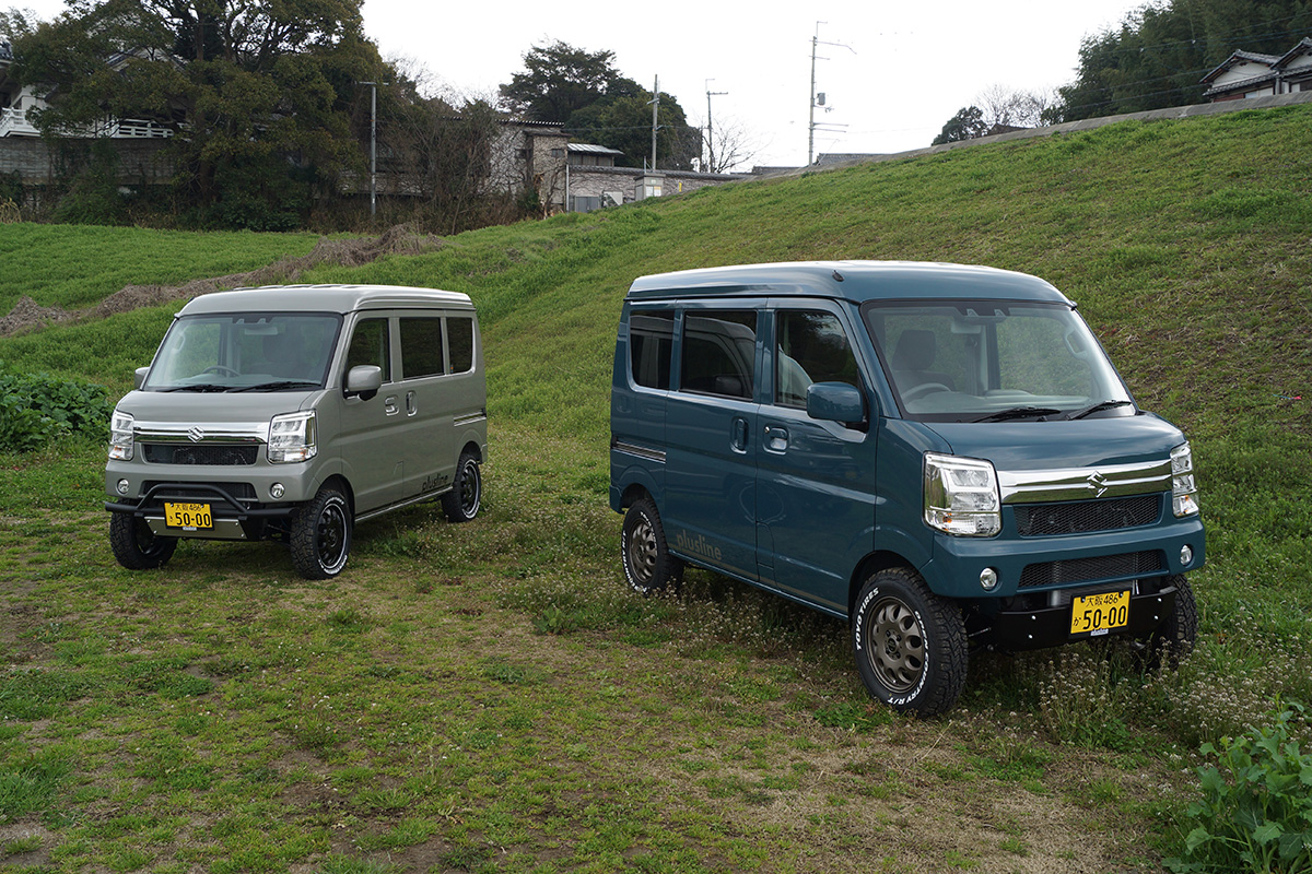 プラスラインでは釣りやキャンプなどアウトドアに特化したスズキエブリイ、ハスラー、ジムニーのリフトアップコンプリートカーを販売しています。