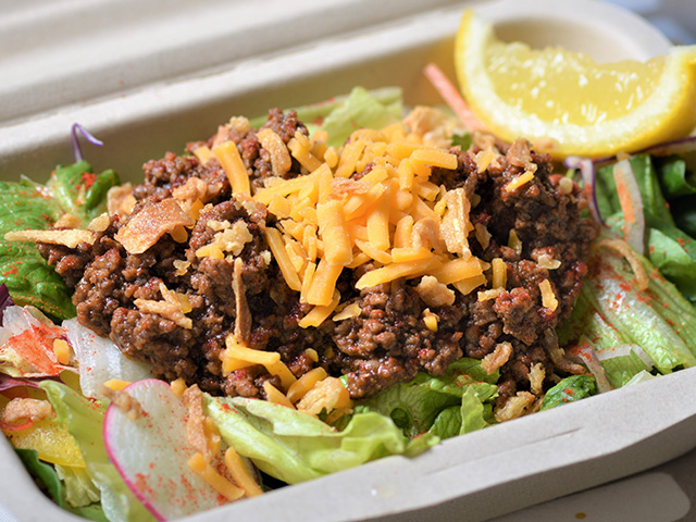 オリジナルタコミートを使用したタコライス、大人の和牛ロコモコ、プリプリ大海老のガーリックシュリンプをご提供いたします。