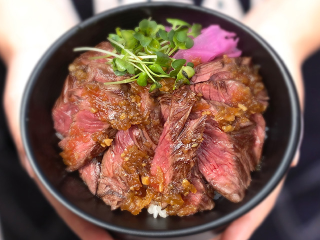 当店人気No.1熟成牛ハラミステーキ丼! 柔らかい肉質、赤身の旨味が凝縮された贅沢なステーキです! 自慢オリジナルステーキソースと炊き立てのご飯でお召し上がり下さい!
