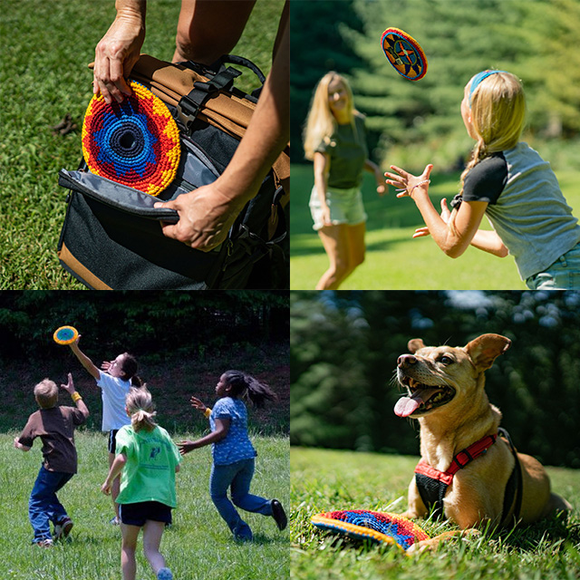 MayaFlya(手編みのフライングディスク)は、柔らかく安全で小さなお子様(小学生以上)からご年配の方まで、老若男女、誰とでもどこでも楽しく遊べるおもちゃです。 ゲーム感覚で的に当てたり、投げ合ったり、基本的なフライングディスクの投げ方、飛ばし方を楽しく学びましょう!